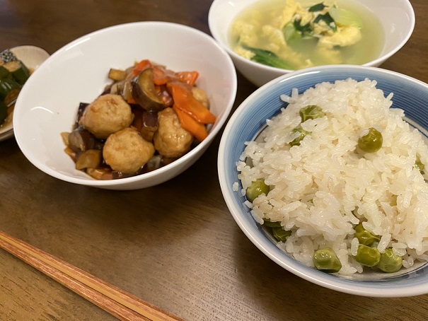 エンドウ豆実家からもらったので早速豆ごはんにしました