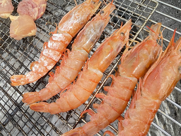 今回BBQで初めてエビを焼きました