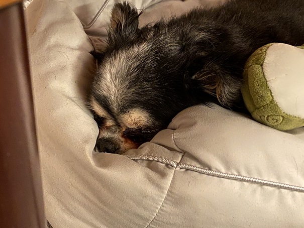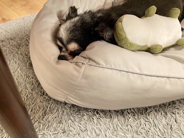 お犬さんの誕生日プレゼントに買ったカバさんと仲良く寝てくれました!2021-05-30