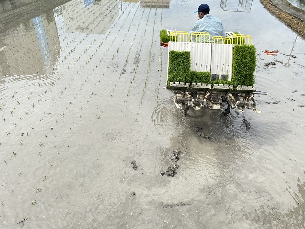田植え機の音がうるさくて話してもなんも聞こえやんから